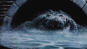 This movie isn't about alligators in Florida though, deep fried or otherwise. No, this is the story of a baby alligator that was taken home with a young girl from her family's trip to Florida. Yes, because nothing says family pet like a little bitey lizard that will eventually grow into a large bitey lizard. So, yeah, the father eventually gets rather unhappy about the cute little guy and flushes him down the toilet. Clearly, you're probably realizing this story is based around the urban legend about an alligator in the sewers, yes?